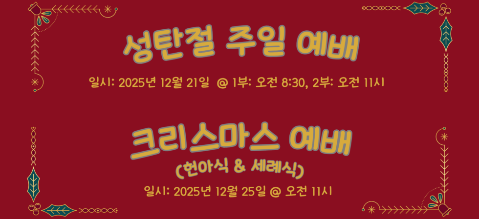 주일예배 (1부: 한국어) 8:30 am